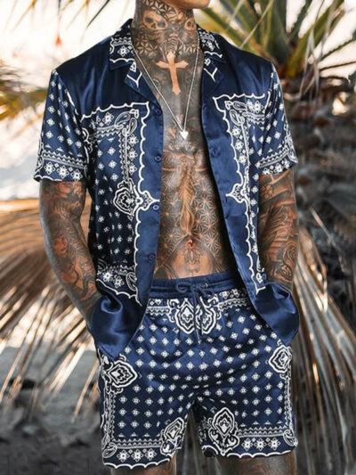 Men’s Loose Shirt Hawaiian Casual Two-Piece Suit