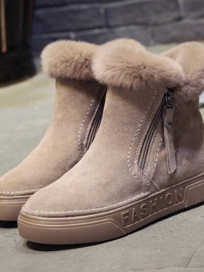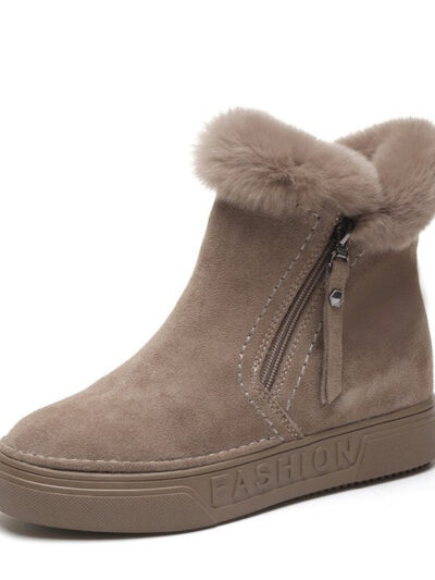 Winter Boots Warm Suede Leather Boots Women Shoes Wedges Non-slip Women Boots