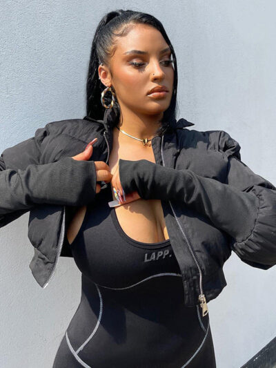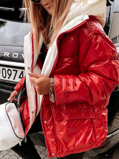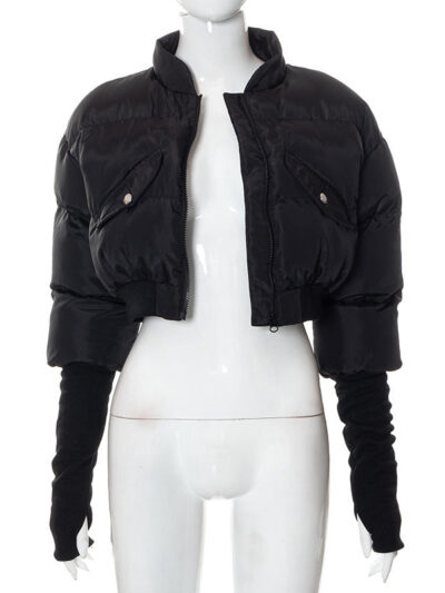 Winter Solid Color Stand Collar Pocket Zipper Sleeve Women’s Wadded Jacket Top For Women