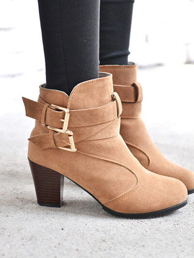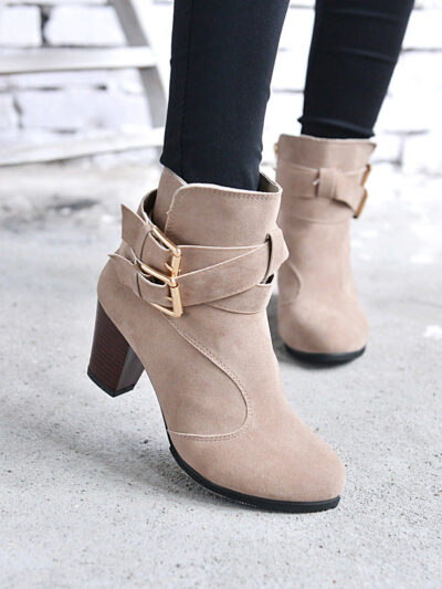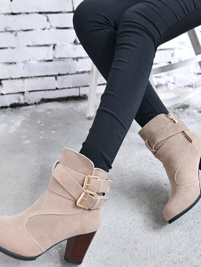 Winter Autumn Leather Casual Women High Heels Pumps Warm Ankle Boots