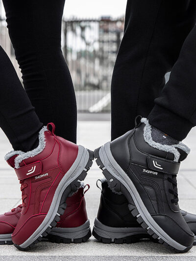Winter Boots Women Men Warm Plush Velcro Snow Boots Climbing Hiking Shoes