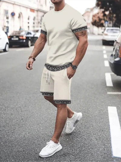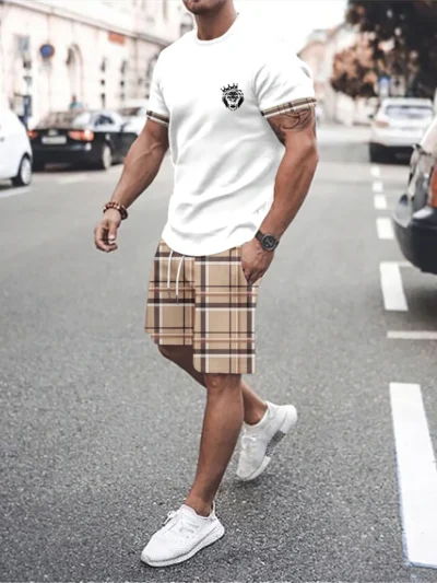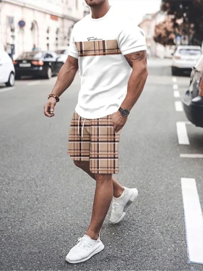 Men’s T-Shirt Sets And Shorts Fashion Digital Printing Tow-Piece Casual Oversized Cloth Men’s Tees Beach Wear Summer