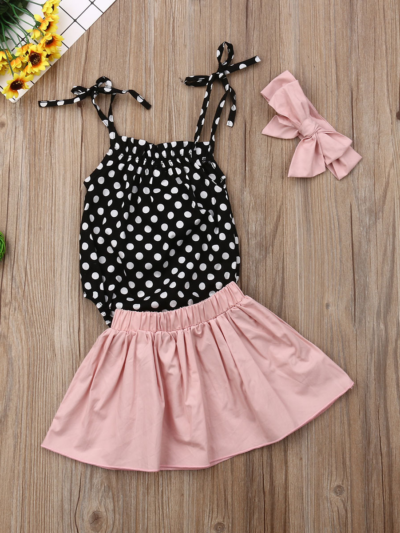 Fashion Summer Kids Girls Clothing Sets Cotton Sleeveless Polka Dot Strap Girls Jumpsuit Clothes Sets Outfits Children Suits