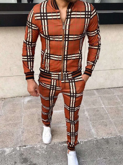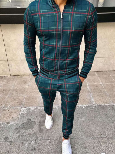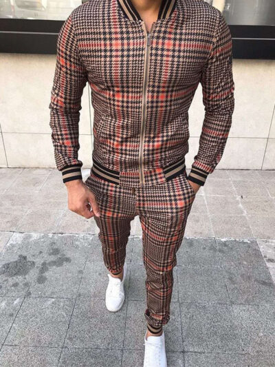 New Men’s Leisure Suits Tracksuits Men Grid Two-piece Patchwork Zipper Tracksuits Small leg Trouser Sportswear New Man Sets