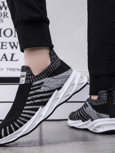 Sock Mesh Shoes Men Stripe Sneakers Lightweight Breathable Flat Shoes
