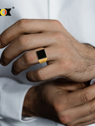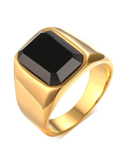 Vnox Mens Signet Ring, Gentle Stainless Steel Square Round Top Ring, Punk Rock Male Fraternal Rings