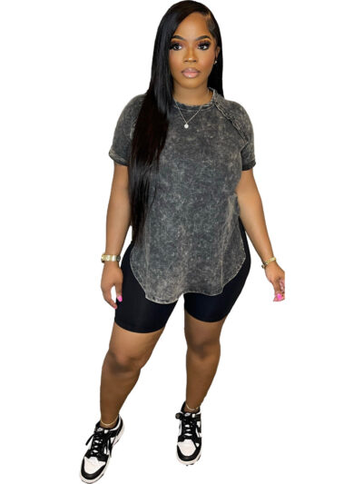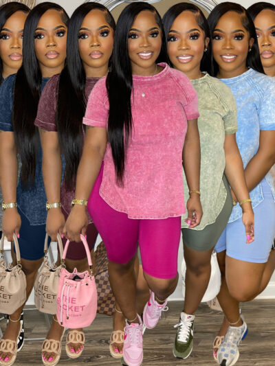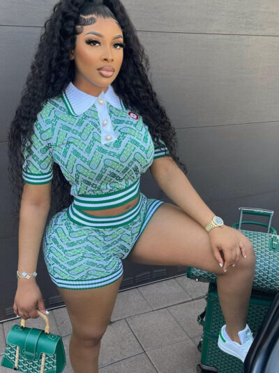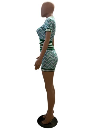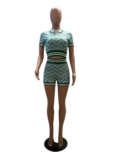 Retro Casual Patchwork Rib Short Sleeve Shorts Set