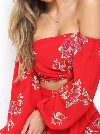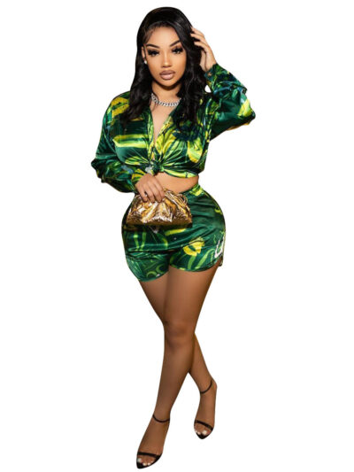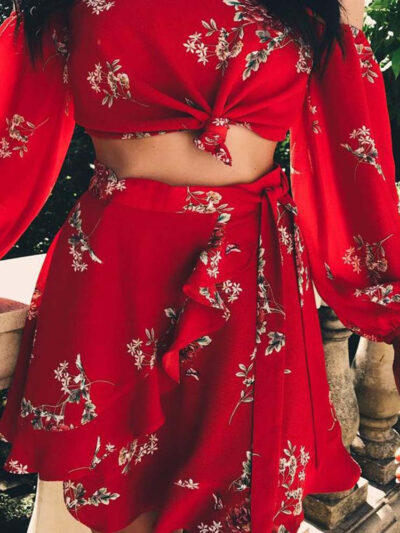 Summer Tied Long Sleeves Top Two-piece Set