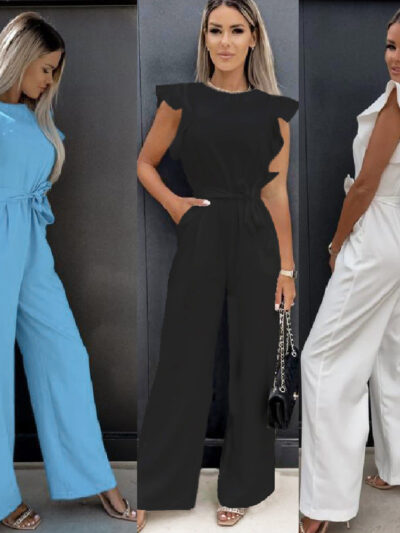 New Round Neck Fashion Waist-controlled Casual Jumpsuit