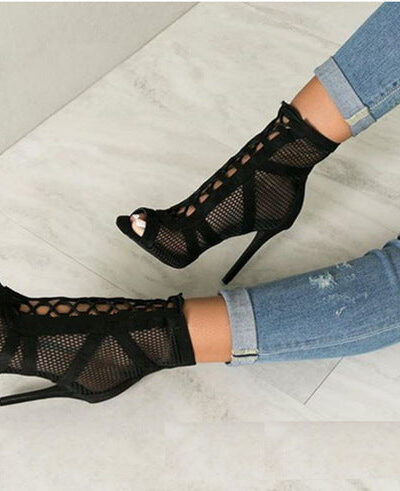 Peep-toe Sandals For Sports Summer Heart-shaped Print Mesh Shoes Women