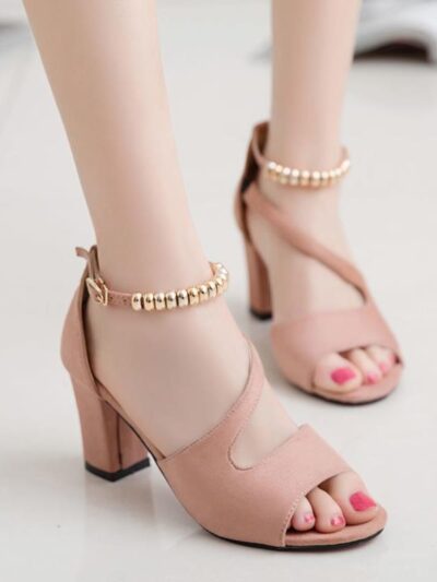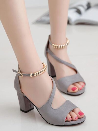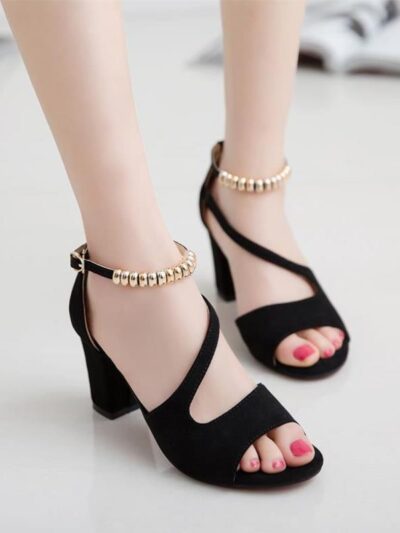 One Word Buckle Mid-Heel Thick Heel High Heels Shoes Back Bag Heel Shoes