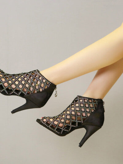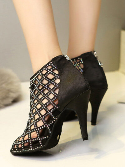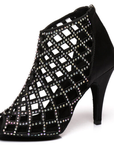 Satin Hot Rhinestone Latin Dance Shoes With High Heels