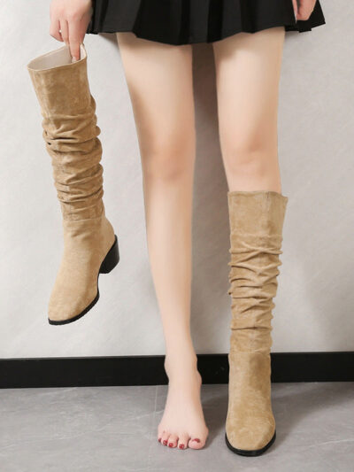 Round Head European And American Sleeve Knight Boots Fleece-lined