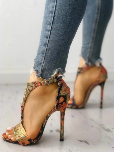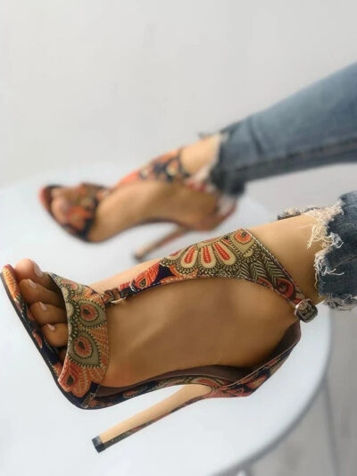 Women’s Shoes Stiletto High Heels 40-43 Large Size Printed High Heel Sandals