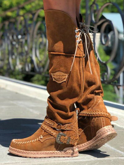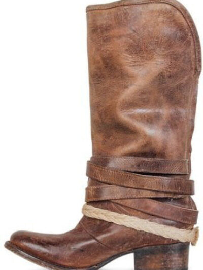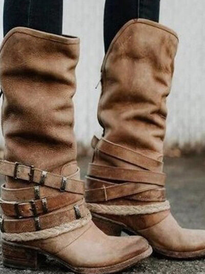 Women’s Belt Buckle Thick Heel Middle Boots
