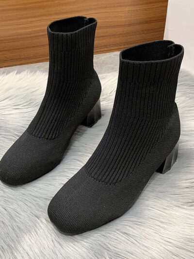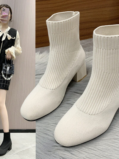 Women’s Boots Round Toe Sleeve Thick Heel Flyknit